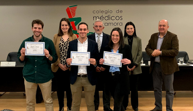 En esta IX Convocatoria de las BECAS DE FORMACIÓN y las AYUDAS A LA PUBLICACIÓN del Ilustre Colegio Oficial de Médicos de Zamora. Correspondieron a ENRIQUE DIAZ GORDO, R3 Radio-diagnóstico. Rotación de 3 meses en Hospital Asepeyo (Madrid): formación en Radiología Musculo-esquelética, beca: 800 euros. SERGIO MARTÍN BLANCO, R5 Traumatología y Ortopedia. Rotación de 4 meses en Hospital Niño Jesús (Madrid): formación en Traumatología y Ortopedia Infantil, Beca: 1200 euros y CARLOTA TUÑÓN DE ALMEIDA, R5 Medicina Interna. Rotación de 3 meses en Hospital de Cruces (Bilbao): formación en Unidad de Enfermedades Auto-inmunes, beca: 800 euros.