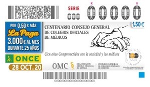 La ONCE dedicará su sorteo del miércoles, 28 de octubre, a la conmemoración del centenario del Consejo General de Colegios Oficiales de Médicos de España (CGCOM) con la emisión de 5,5 millones de cupones que difundirán por toda España esta efeméride para resaltar el compromiso y misión de la corporación a lo largo de estos cien años.