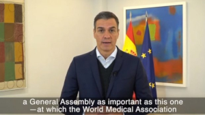 El presidente del Gobierno, Pedro Sánchez, ha enviado un mensaje a la profesión médica con motivo de la 71ª Asamblea General de la Asociación Médica Mundial (AMM), Córdoba 2020, en el que ha expresado “ese reconocimiento que representa la consideración renovada y prominente que la sociedad española tiene hacia los enfermeros, técnicos, sanitarios y médicos. Habéis salvado muchas vidas, pero además nos habéis salvado la vida como sociedad. Por eso me produce un orgullo inmenso que esta Asamblea General tan importante, cuando el CGCOM celebra su centenario, tenga lugar en España”.