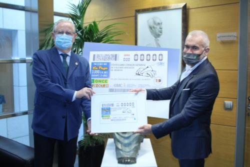 Jorge Iniguez Villanueva, director general adjunto de organización, talento e innovación y sostenibilidad de la ONCE, y el Dr. Serafín Romero, presidente del CGCOM, han presentado hoy este cupón con el que la ONCE también quiere homenajear a todos los profesionales de la Medicina que están dándolo todo en la lucha contra el Covid-19.