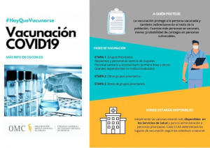 A través de los siguientes epígrafes la corporación médica lanza un claro mensaje de apoyo al programa de vacunación y participa de la necesaria campaña de información a favor de esta vacuna. Esta divulgación debe ser liderada por la profesión médica junto a otros profesionales sanitarios, quienes tras su experiencia en la lucha contra la COVID-19 son los primeros colectivos motivados para vacunarse, reafirmando su férreo compromiso en la lucha contra la pandemia.