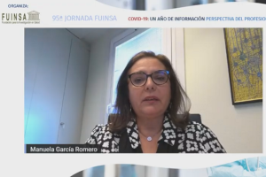 Ayer, jueves 11 de marzo, la Dra. Manuela García Romero, vicepresidenta segunda del Consejo General de Colegios Oficiales de Médicos (CGCOM), participó en la Jornada Covid-19: Un año de información. Perspectiva del Profesional Sanitario, organizada por la Fundación para la Investigación en Salud (FUINSA), en la que destacó el papel de la corproación médica como fuente de información durante la pandemia a través de un trabajo "basado en el mayor rigor posible, cuyo conocimiento se ha puesto al servicio de la sociedad y las administraciones, para ofrecer información veraz ante la infoxicación y los bulos que hemos sufrido en la pandemia.