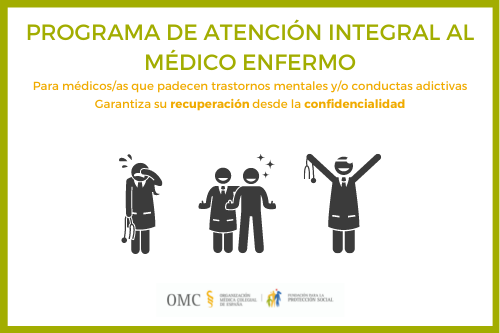 La Fundación para la Protección Social de la Organización Médica Colegial (FPSOMC) difunde este mes, como parte de su campaña “12 meses, 12 prestaciones”, el Programa de Atención Integral al Médico Enfermo (PAIME), una ayuda destinada a hacer frente a los gastos originados por el ingreso en un centro clínico especializado para el tratamiento de enfermedad mental y/o conductas adictivas para los profesionales.