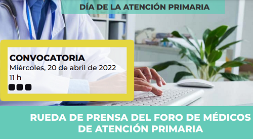 El Foro de Médicos de Atención Primaria celebra, el miércoles 20 de abril, a las 11:00h, un encuentro con medios, con motivo del Día de la Atención Primaria, en el que dará a conocer las consecuencias de no dotar al primer nivel asistencial de los recursos necesarios.