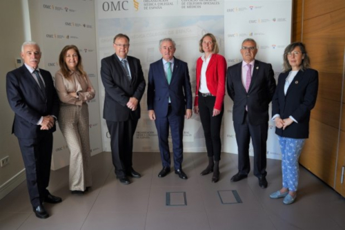 En representación del CGCOM se encontraban, el Dr. Tomás Cobo, presidente; la Dra. Mª Isabel Moya, vicepresidenta primera; el Dr. José María Rodríguez, secretario general; la Dra. Rosa Arroyo, vicesecretaria; y el Dr. Enrique Guilabert, tesorero. Por la otra parte, en nombre del Comité Permanente de Médicos Europeos (CPME) acudieron Dr. Christian Keijzer, presidente; y de la Sra. Annabel Seebohm, secretaria general del CPME.