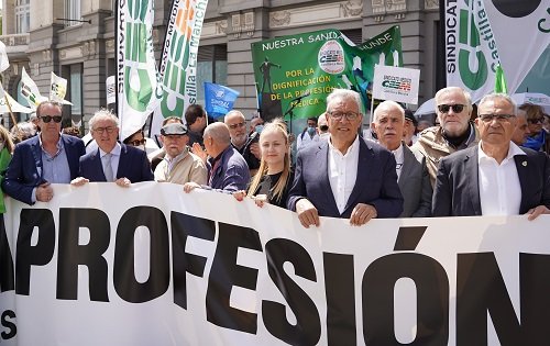 Además, diferentes secretarios generales autonómicos y representantes de CEEM y OMC han señalado el resto de reclamaciones, que pasan por la protección a los profesionales, recuperar la pérdida de poder adquisitivo, restablecer la jornada de 35 horas en toda España, dignificación retributiva de las guardias, acabar con la precariedad y temporalidad, activar, homogeneizar y ampliar la carrera profesional en toda España, mejorar el sistema de Formación Sanitaria Especializada, una jubilación flexible entre los 60 y 70 años, garantizar la titulación, la creación de la especialidad de Urgencias y mejorar la formación de Familia, que las lenguas cooficiales no sean requisito para trabajar en el SNS, un plan urgente para la Atención Primaria con su financiación finalista, tolerancia cero contra las agresiones a sanitarios y la incentivación de los puestos de difícil cobertura, como ha señalado el secretario general, Gabriel del Pozo, para cerrar el discurso.