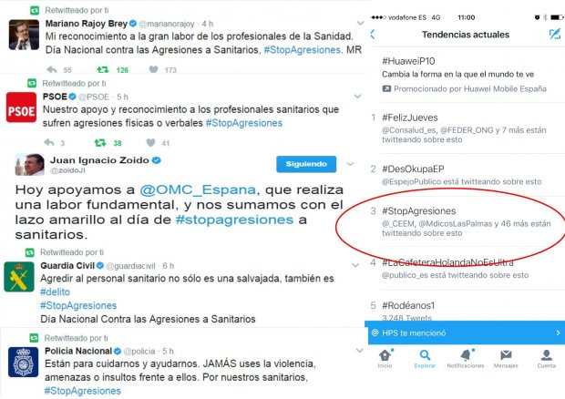 El Presidente del Gobierno, Mariano Rajoy; el ministro del Interior, Juan Ignacio Zoido; el Partido Socialistas Obrero Español; la presidenta del Congreso, Ana Pastor; consejerías de Sanidad, la Guardia Civil y la Policía Nacional, medios de comunicación y diversos colectivos sanitarios etc… apoyaron de manera masiva esta campaña que bajo el hashtag #StopAgresiones pretende poner fin a la lacra de las agresiones a sanitarios.