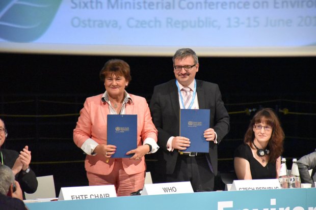 La Declaración de Ostrava, en honor a la ciudad checoslovaca donde tuvo lugar la Sexta Conferencia Ministerial sobre Medio Ambiente y Salud, fue aprobada por aclamación, y posteriormente se firmó en nombre de los Estados miembros por el Viceministro de Relaciones Exteriores de la República Checa, Václav Kolaja, y la Dra. Zsuzsanna Jakab, directora regional de la OMS para Europa.