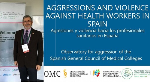 El Dr. Juan Manuel Garrote, secretario general de la Organización Médica Colegial (OMC) y de su Fundacion para la Cooperación Internacional (FCOMCI) participó en el IV Foro Global sobre Recursos Humanos para la Salud, celebrado recientemente en Dublín, donde presentó la labor de la OMC y su Observatorio Nacional de Agresiones como herramienta para hacer frente a la violencia al personal sanitario en nuestro país