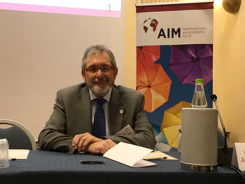 El Dr. Juan Manuel Garrote, secretario general de la Organización Médica Colegial (OMC) y de su Fundacion para la Protección Social (FPSOMC) participó en una conferencia en la Asamblea General Extraordinaria de la Asociación Internacional de la Mutualidad (AIM), celebrada recientemente en Roma, para presentar su Programa de Atención Integral al Médico Enfermo (PAIME), acogido con gran interés entre los miembros de la AIM que lo calificaron como "un ejemplo de buena práctica"