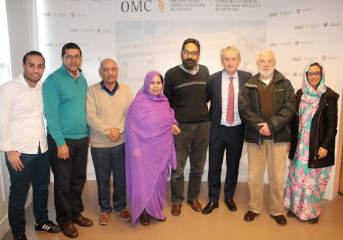 El Dr. Tomás Cobo, vicepresidente primero de la OMC y su Fundación para la Cooperación Internacional (FCOMCI), y médico cooperante en los campamentos de refugiados de Tinduf desde hace más de 15 años, fue el impulsor de este encuentro en el que participaron además de los representantes de las comisiones médicas, Mohamed Sidahmed, viceministro de Salud de la República Árabe Saharaui Democrática; Dr. Jalil Lassiad, representante del Gobierno Saharaui y primer y ex presidente del Colegio de Médicos Saharaui, inaugurado en 2013; Jatra Malainin, director de Comisiones Médicas; y Jira Bulahi Bad representante de la Delegación Saharaui en España.