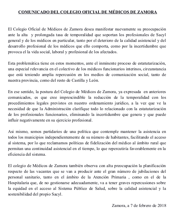 Comunicado del Colegio Oficial de Médicos de Zamora Pulse aquí o sobre la imagen para acceder al comunicado Anterior Siguiente