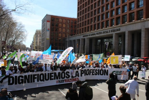 Bajo el lema “Dignifiquemos la profesión, hay razones” la concentración comenzó a las 12,00 h. a las puertas del Ministerio de Sanidad donde los manifestantes mostraron todo tipo de pancartas, y lanzaron mensajes tales como “Hay razones”, “que nos devuelvan nuestros derechos”, “recuperemos lo perdido”, entre otros.