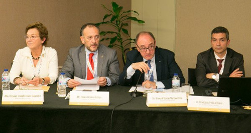 La mesa ‘Biografía Médica. Entrada y salida al servicio del paciente’ estuvo moderada por el Dr. Carlos Molina, presidente del Colegio de Médicos de Cuenca; el abstract fue realizado por la Dra. Alicia Córdoba, vocal de Médicos Jóvenes y Promoción de Empleo de la OMC, y el Dr. Ricard Gutiérrez, vocal de Médicos Jubilados de la OMC; el moderador fue el Dr. Manuel García Bengoechea, presidente del COM Gipuzkoa; como ponentes intervinieron la Dra. Dolores Damborenea, especialista de Medicina Interna; y el Dr. Francesc Feliú, vocal de Médicos Tutores y Docentes de la OMC. Las preguntas las formularon el Dr. Antonio Aguado, presidente del COM Huelva; Dr. José María Breva, presidente del COM Castellón; y la Dra. Mª Sonsoles Castro, vocal de Médicos de Administraciones Públicas de la OMC. En la siguiente sesión sobre la misma ponencia, el Dr. Pedro Cabrera, presidente del COM Las Palmas fue el moderador; los ponentes fueron Dr. Miquel Vilalderll, expresidente del COM Barcelona; y la Dra. Nieves Romero, gerente del Hospital Virgen del Rocío de Sevilla; y las preguntas fueron planteadas por la Dra. Natividad Laín, presidenta del COM Toledo, Dr. Rafael Teijeira, presidente del COM Navarra, y el Dr. Fernando Vizcarro, presidente del COM Tarragona.