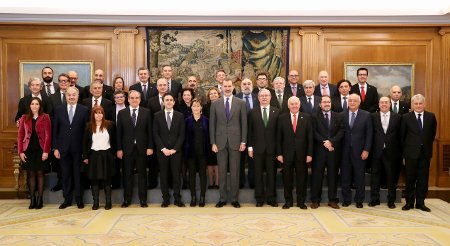Su Majestad el Rey Felipe VI recibió ayer lunes en audiencia a los presidentes de las Corporaciones Colegiales de Unión Profesional (UP) con motivo del 40º aniversario de la Constitución Española. Acto en el que participó el presidente del Consejo General de Colegios de Médicos (CGCOM), Dr. Serafín Romero, que, además, ostenta el cargo de vicepresidente de Unión Profesional. Los representantes de las corporaciones profesionales agradecieron a Don Felipe el hacer posible la estabilidad social y desarrollo democrático en el que se han podido consolidar los Colegios Profesionales. Asimismo, se refirieron a la deontología y a la formación continuada como esencia de los Colegios profesionales y le trasladaron que los intereses de las profesiones son los intereses de la ciudadanía