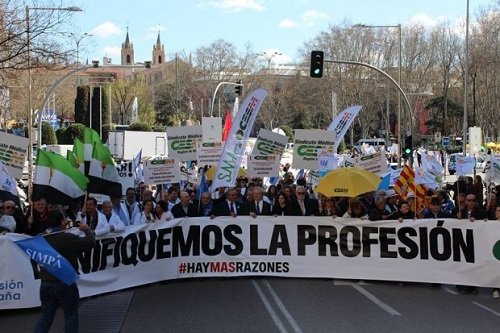 La manifestación fue seguida de una marcha hasta la Plaza de las Cortes donde los principales representantes y portavoces de la profesión hicieron público un manifiesto que resume las principales reivindicaciones de la profesión médica.