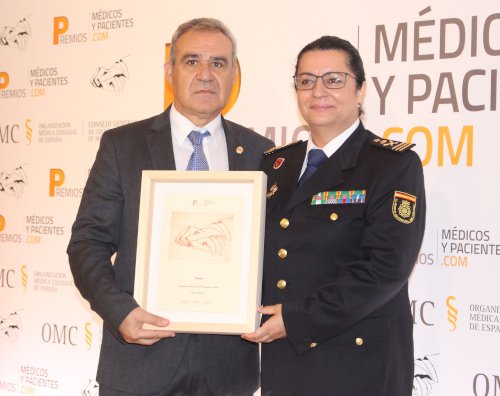Pilar Allué Blasco, comisaria principal y subdirectora general de Recursos Humanos y Formación de la Dirección General de la Policía, recibió de manos del Dr. José María Rodríguez Vicente, secretario general del Consejo General de Colegios Oficiales de Médicos (CGCOM), el reconocimiento a la Campaña en Redes Sociales de Divulgación en Salud en la entrega de la II Edición de los Premios Médicos y Pacientes, en la sede de la Organización Médica Colegial (OMC), y señaló que “las redes sociales ayudan a la prevención de la salud, el desmontaje de bulos que hacen peligrar la salud pública y la promoción de hábitos saludables”