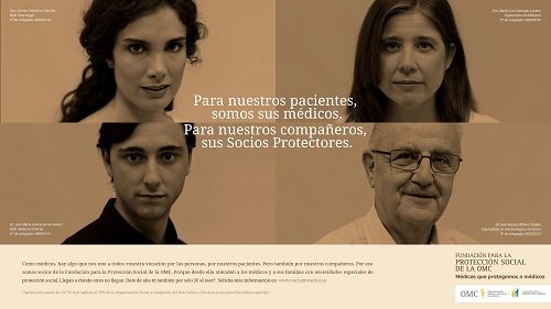 Protagonizada por cuatro médicos reales en diferentes etapas de su carrera profesional, la campaña apela al sentimiento solidario del colectivo médico y se dirige principalmente a este conjunto de profesionales, pero también a sus familiares y a la sociedad en general, animándoles a ser socios protectores o donantes de la FPSOMC.