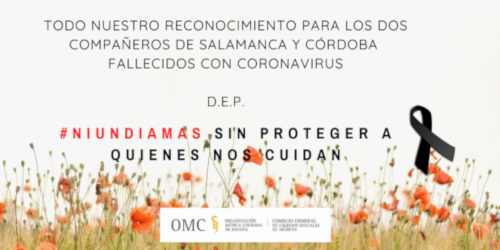 El Consejo General de Colegios Oficiales de Médicos (CGCOM) lamenta profundamente el fallecimiento de dos médicos de Atención Primaria en Córdoba y Salamanca, primeras víctimas mortales para la profesión por la pandemia del Covid 19 desde que se decretó el Estado de Alarma