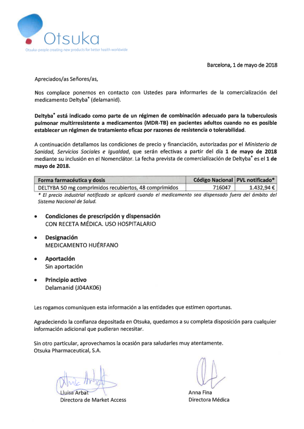 Nota informativa - DELTYBA 50 mg COMPRIMIDOS Pulse aquí o sobre la imagen para acceder al pdf Anterior Siguiente