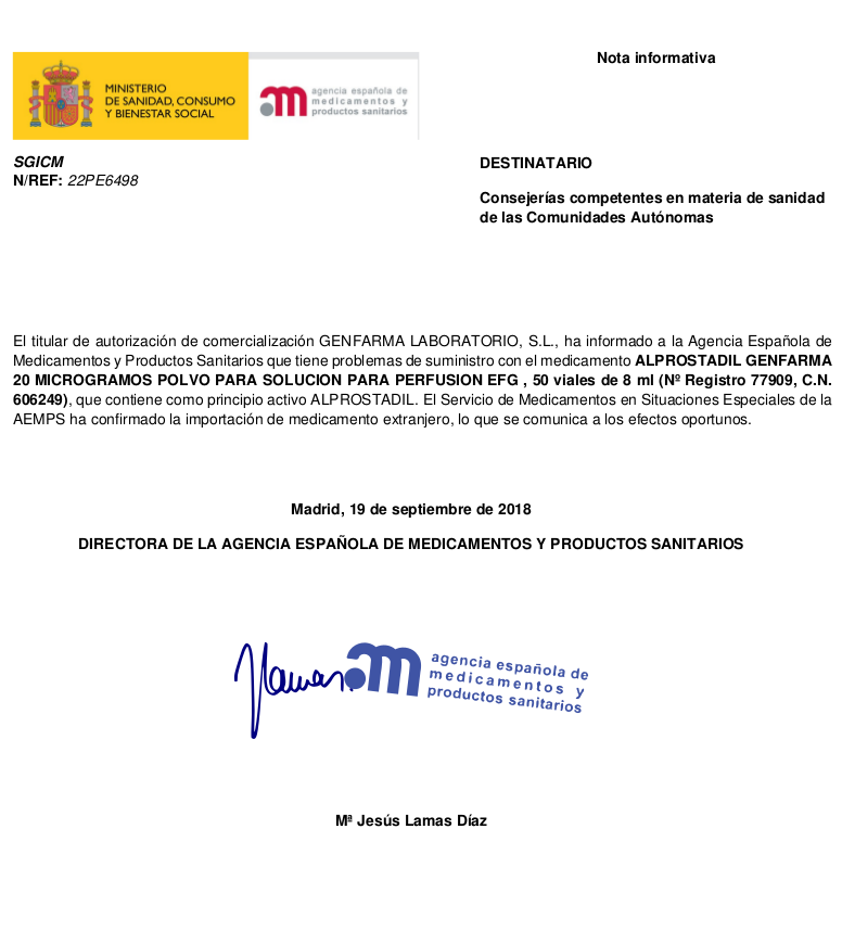 Nota informativa - Alprostadil Pulse aquí o sobre la imagen para acceder a la nota informativa Anterior Siguiente