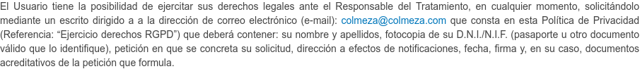 El Usuario dispone y puede ejercitar los siguientes derechos en relación con la información personal suministrada a :